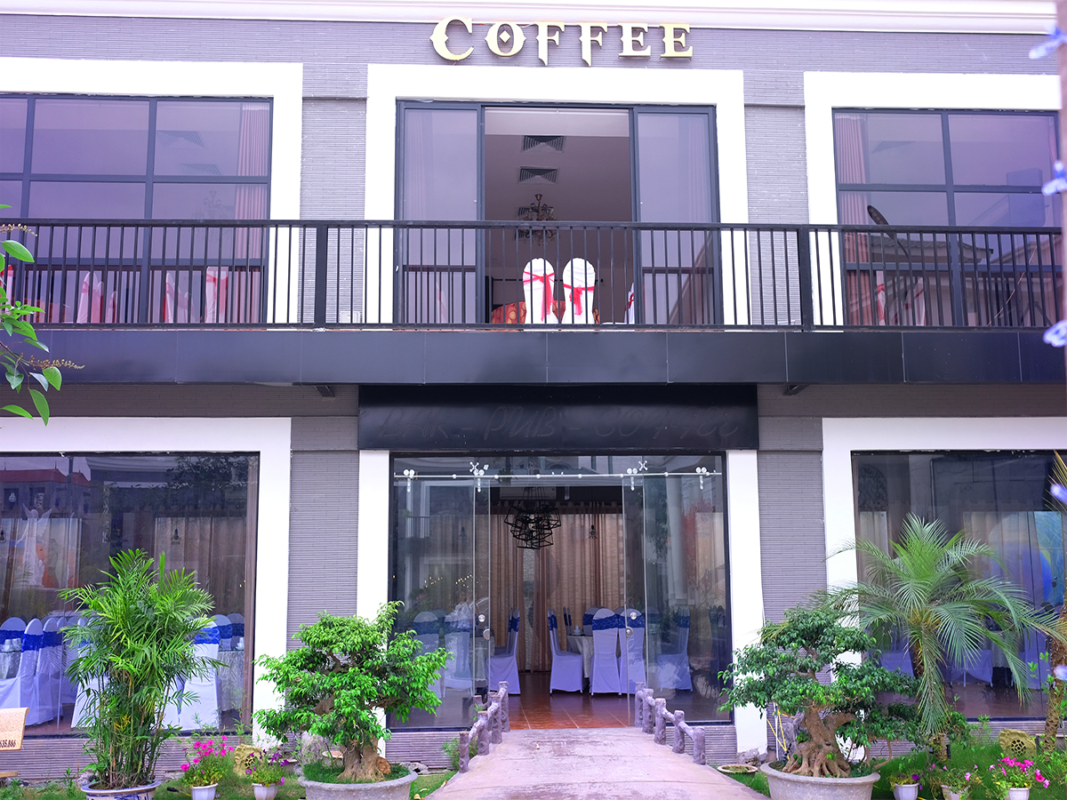 - Nhà Cofee (Xanh Coffee): Với diện tích hơn 200m² 1 sàn, 2 tầng. Tầng 1 là tầng café, dành cho khách hàng muốn uống nước ngồi thư giãn đợi khách, hoặc sau khi ăn xong. Tầng 2 với không gian ấm cúng sang trọng là nơi dành tổ chức những sự kiện sinh nhật, tiệc chiêu đãi khoảng 15 mâm khách.