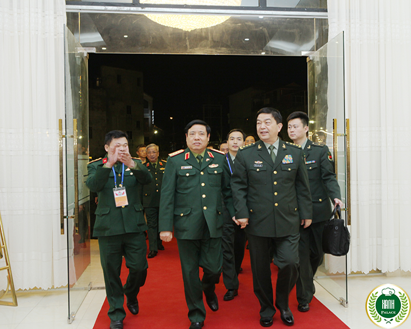 Tướng hai nước với cái bắt tay nhau thân mật đi vào "Xanh Palace" nơi tổ chức tiệc chiêu đãi.