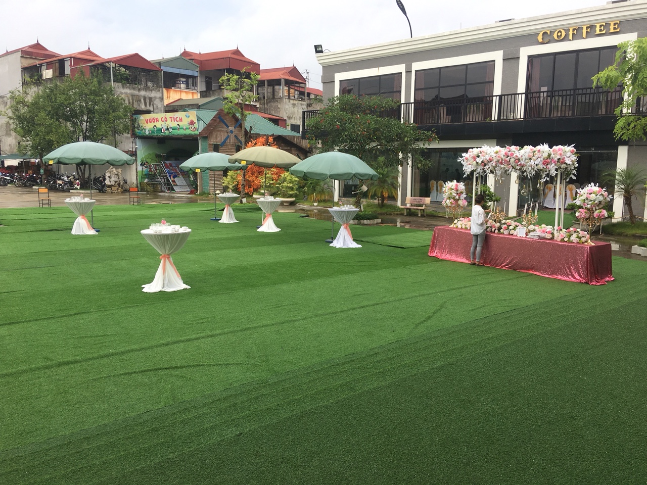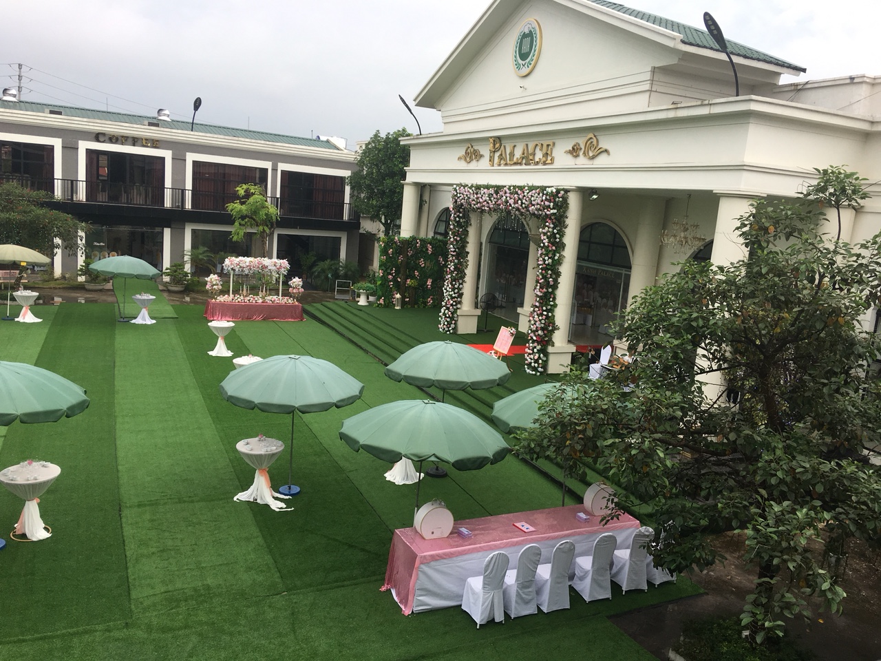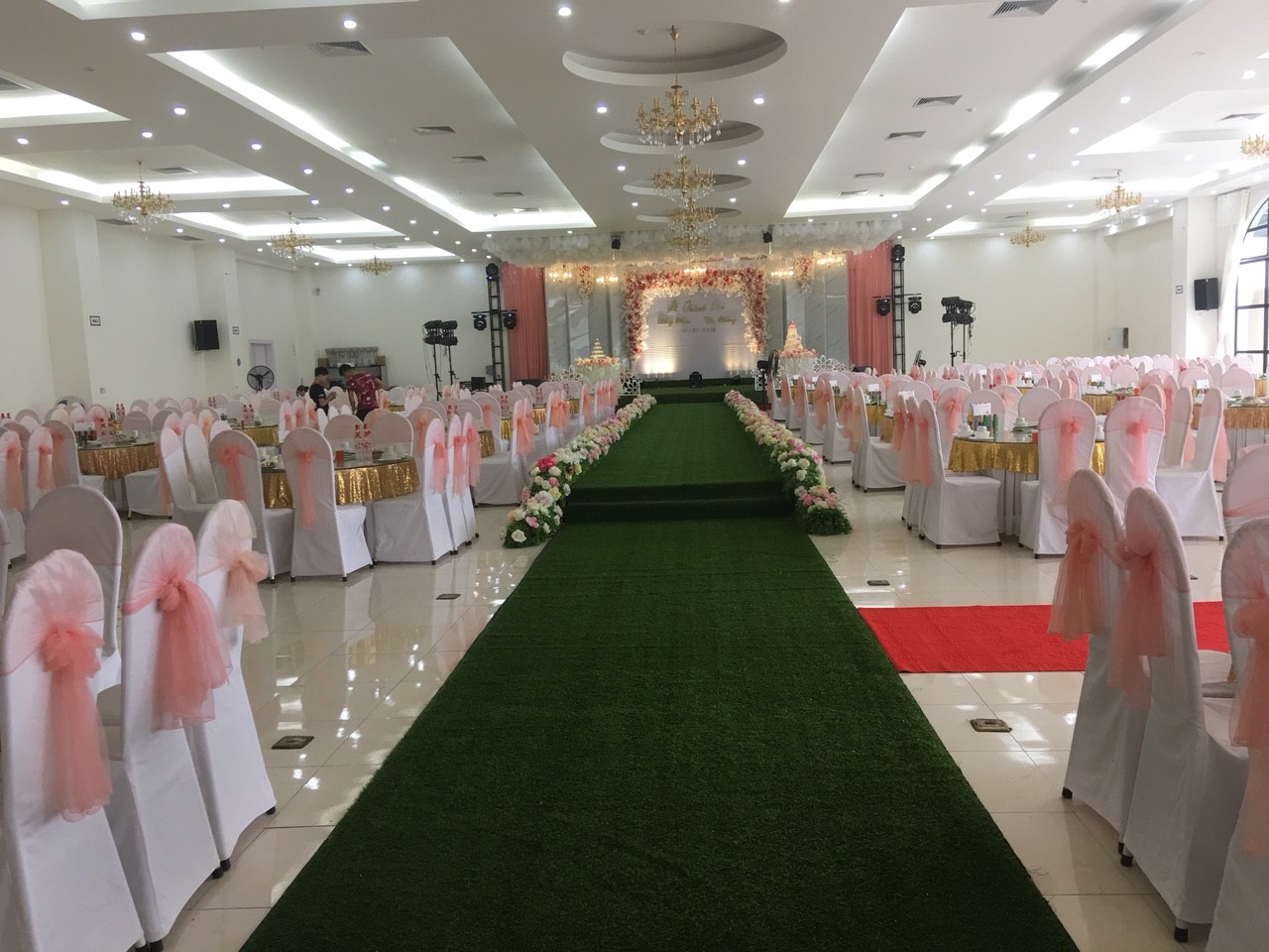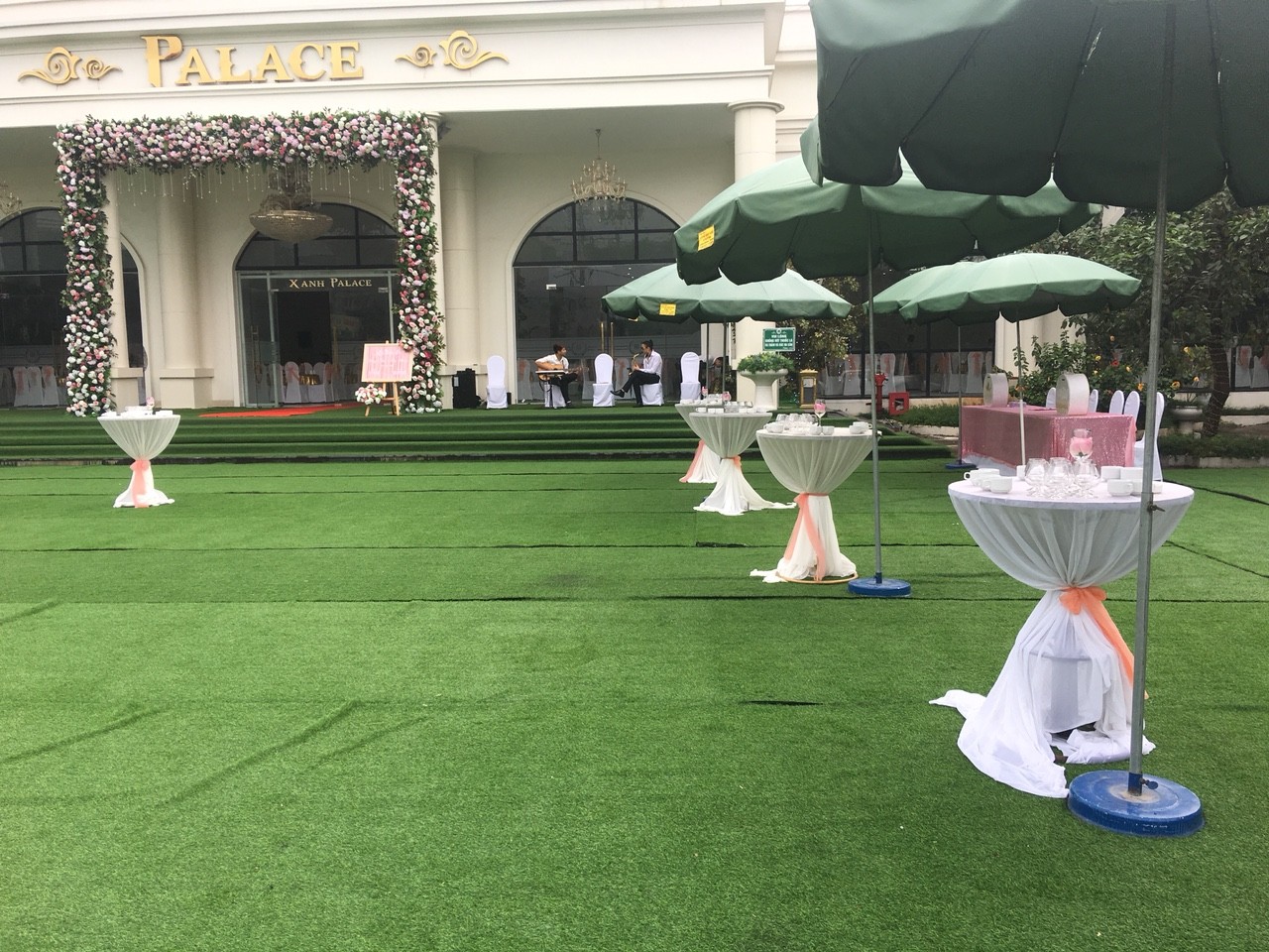 Dưới đây là một số hình ảnh về những hạng mục trang trí đám cưới mà Nhà hàng Xanh thực hiện, tông màu trang trí chủ đạo cũng là màu xanh lá. Nhưng để sắc xanh không nhàm chán, ê kíp Xanh Palace đã chọn thêm những gam màu bổ trợ, khiến không gian thêm tươi sáng, gần gũi nhưng vẫn hiện đại, trẻ trung.
